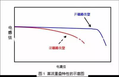 (1)基于电感值的变化率的电流,我们称为Isat. 它是以电感值的下降程度为指标的额定电流,超出该范围使用时,可能会由于纹波电流增加而导致IC控制不稳。大部分电感厂商一般取电感值下降到20%的电流为Isat,也有少量厂商设为下降30%或者10%,所以选型时要特别注意这一点.此外,根据电感磁路构造的不同,磁饱和的倾向(即电感值的下降倾向)也有所不同。图1是表示不同磁路构造所导致的电感值的变化的示意图。对于开磁路类型,随着直流电流的增加,到规定电流值为止呈现比较平坦的电感值,但以规定电流值为境界电感值急剧下降。相反闭磁路类型, 随着直流电流的不断增加,透磁率的数值逐渐减少,因此电感值缓慢会平缓的下降,而不是急剧下降。